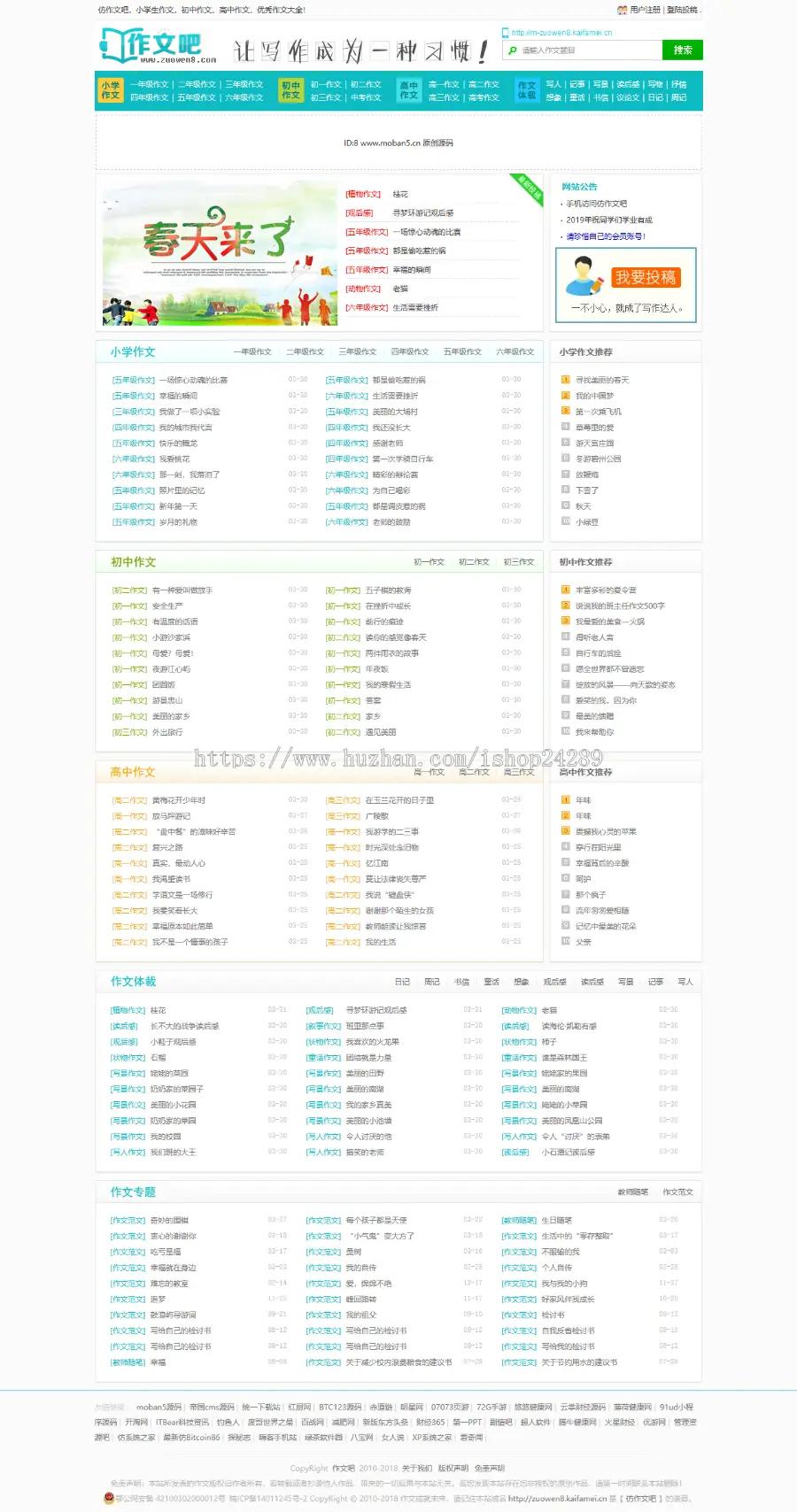 仿《作文吧》源码 作文范文网站模板帝国cms7.5内核 同步生成+手机+采集