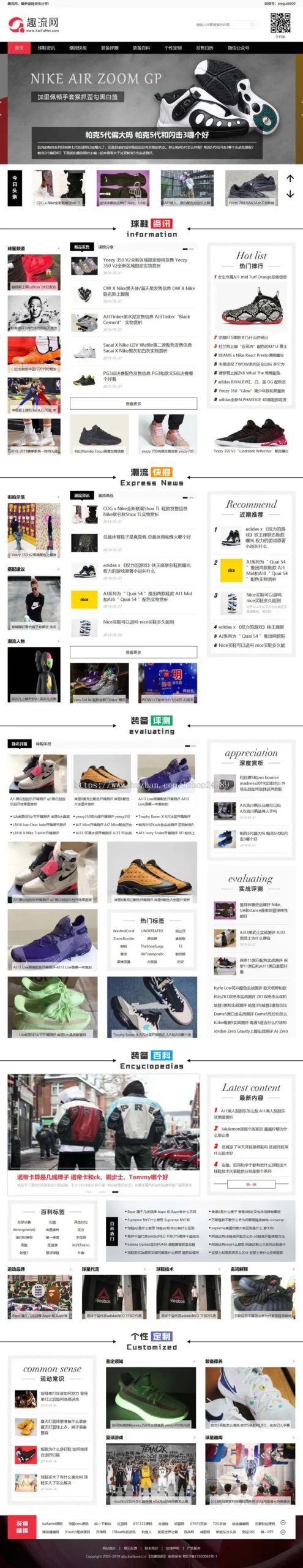 仿《趣流网》源码 运动球鞋资讯门户网站模板 帝国cms+自动采集+手机站+同步生成