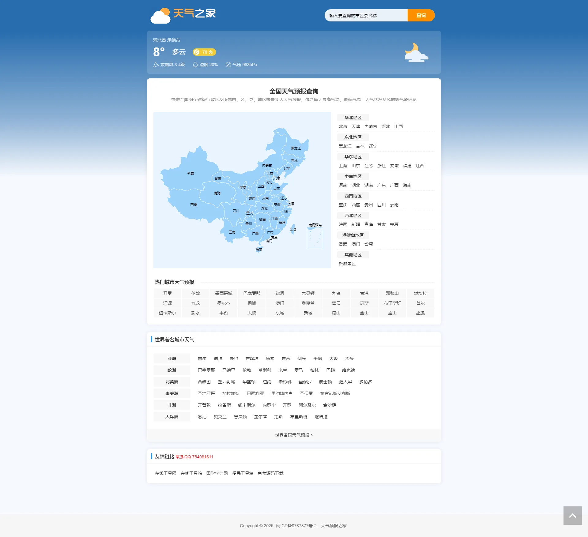 帝国CMS7.5 环境要求 nginx php7.0 mysql5.6-5.7(不是这个环境自行解决!) 源码介绍: 本源码全自动采集 每天更新!提交后扔在那不用管。 养站,权重站必备! 国内城市显示当天天气 中栏展示前一天和今天以后之后6天天气 ,国外城市显示当天天气,具体查看演示站! 警告:本源码有一些城市页面错误,购买须知,无法修复! 资源下载下载价格100.00 元立即购买温馨提示:当前网盘链接正常,请放心购买/下载 0