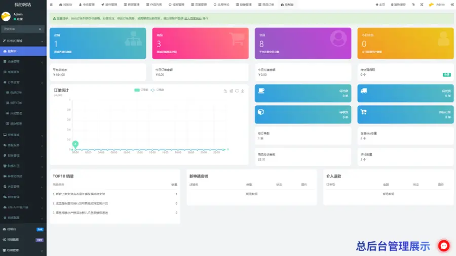 1、独立商家后台用于店铺商品管理订单管理发货管理等