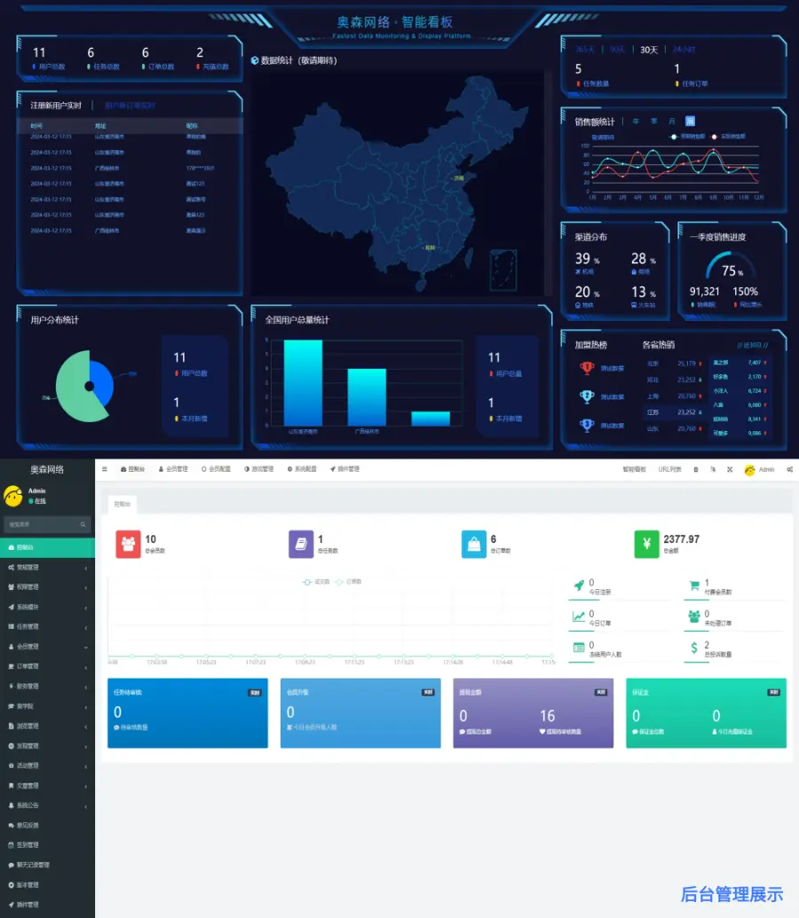网页端+双端APP+可封装小程序+可对接公众号登录