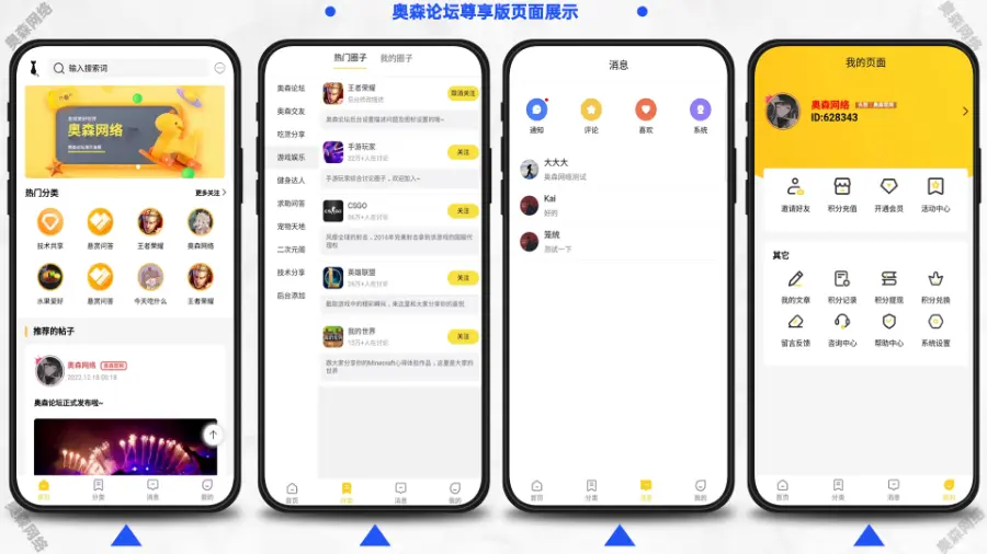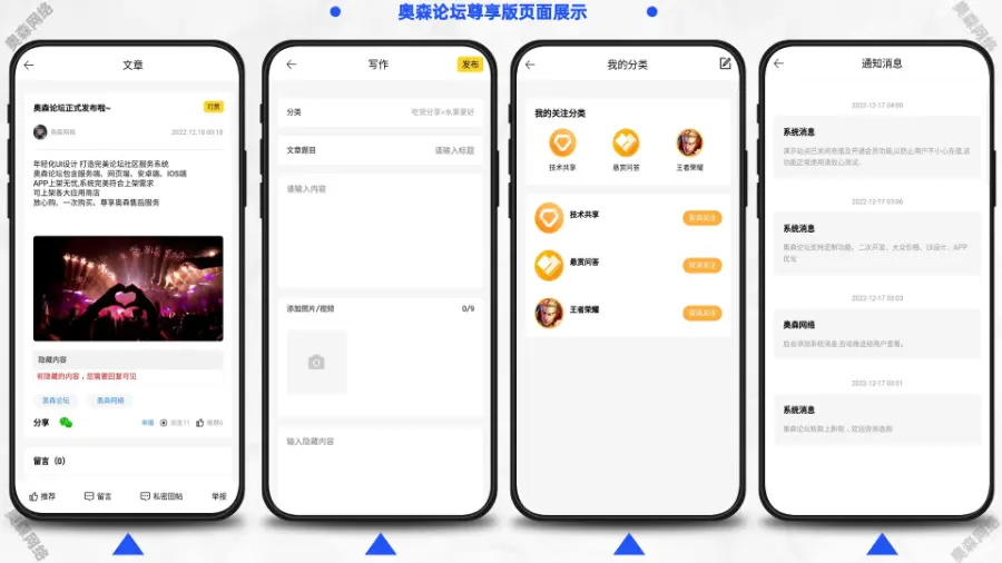 8.支持消息标识,点赞通知、评论通知、系统通知,支持会员头像专属标识,及其它会员相关特权