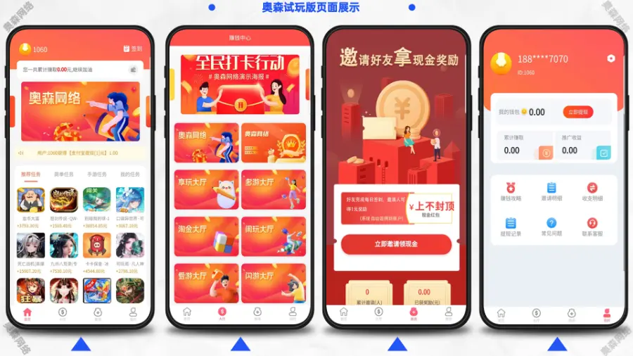 1.系统对接六款试玩平台、两款任务墙,可进行二次开发修改