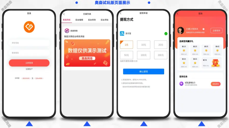 奥森试玩系统均支持定制二次开发功能,如需看演示后台请联系客服。
