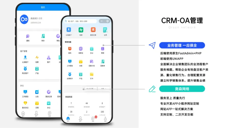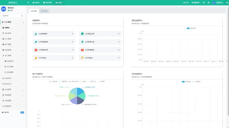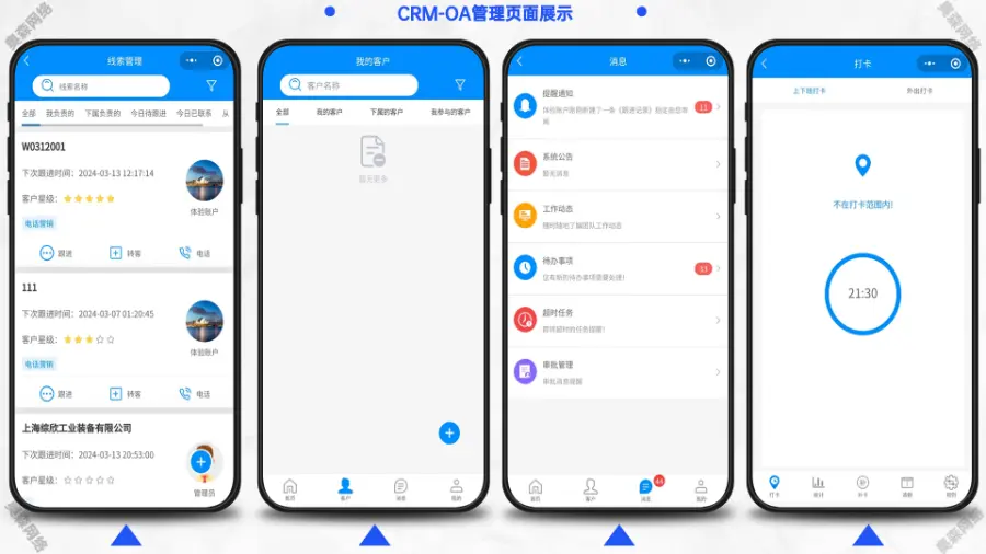 企业级OA办公CRM客户管理多端同步签到打卡数据分析合同管理办公系统