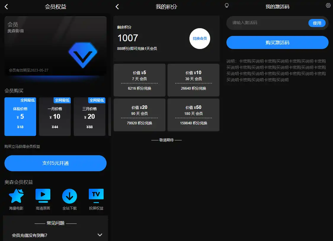 会员升级及其它功能