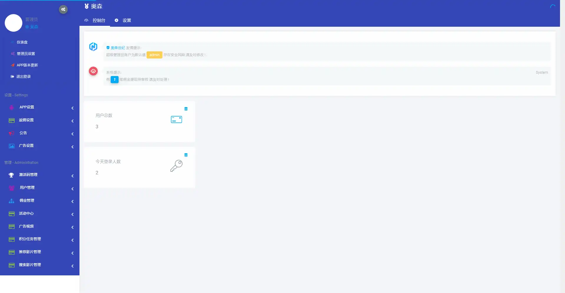 后台可设置试用时间 每日签到赠送多少积分功能