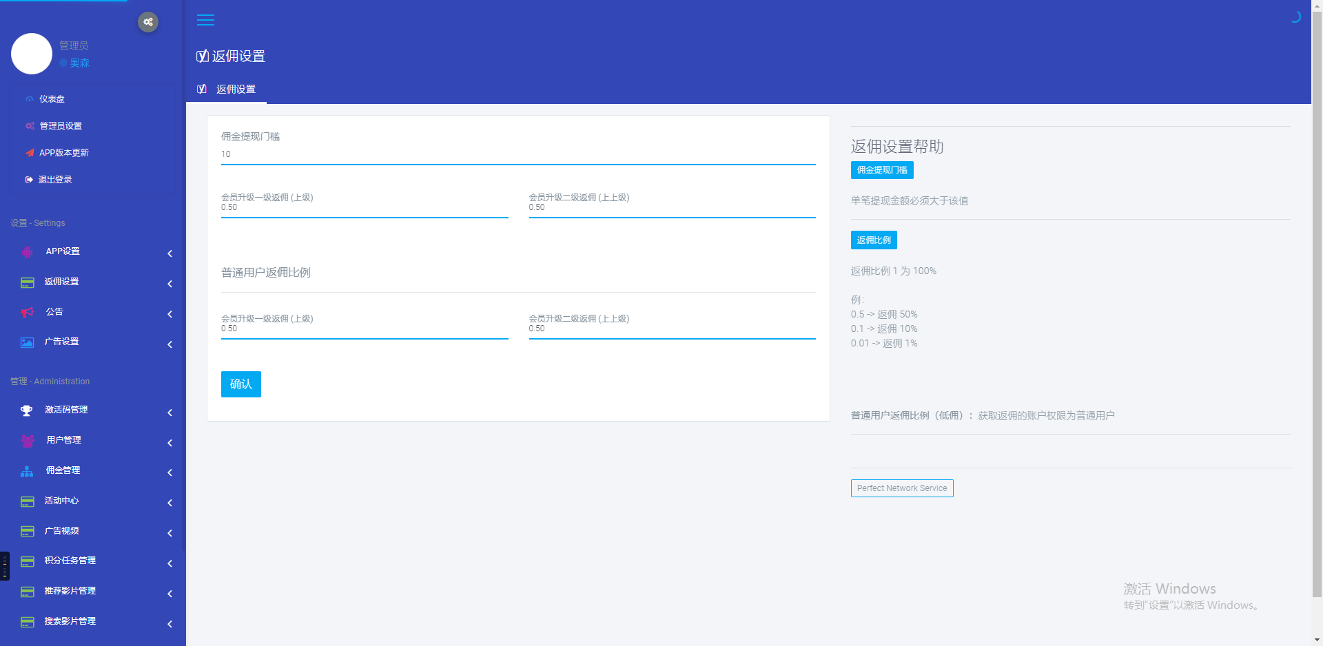 好友充值会员 后台设置赠送佣金的百分比