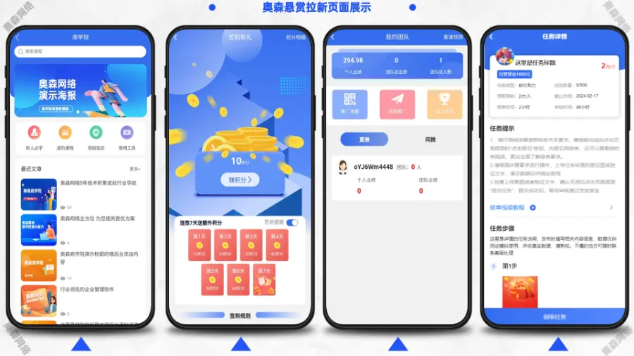 16.我的页面:支持已结任务查看、任务管理、我的订单、我的活动、我的团队、排行榜、在线客服、意见反馈、系统设置、我的信用等