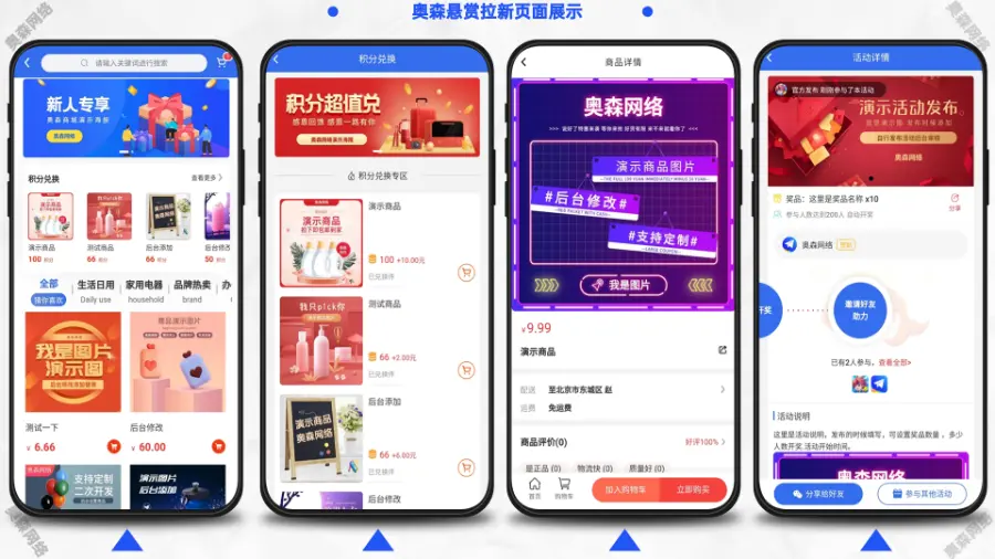 11.在线商城:后台添加商品、可选择是否虚拟物品、分类设置、轮播图设置、积分兑换商品、商品分享、商品价格设置、商品数量设置、在线物流查看、是否需要运费设置、商品评价及更多功能……