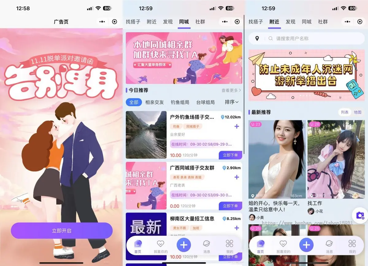 找搭子系统源码,圈子源码、社交源码、陪 玩源码,亲测可用,功能非常齐全,企业级别运营的一套源码,搭子、圈子、社群、同城、社交、陪 玩等。