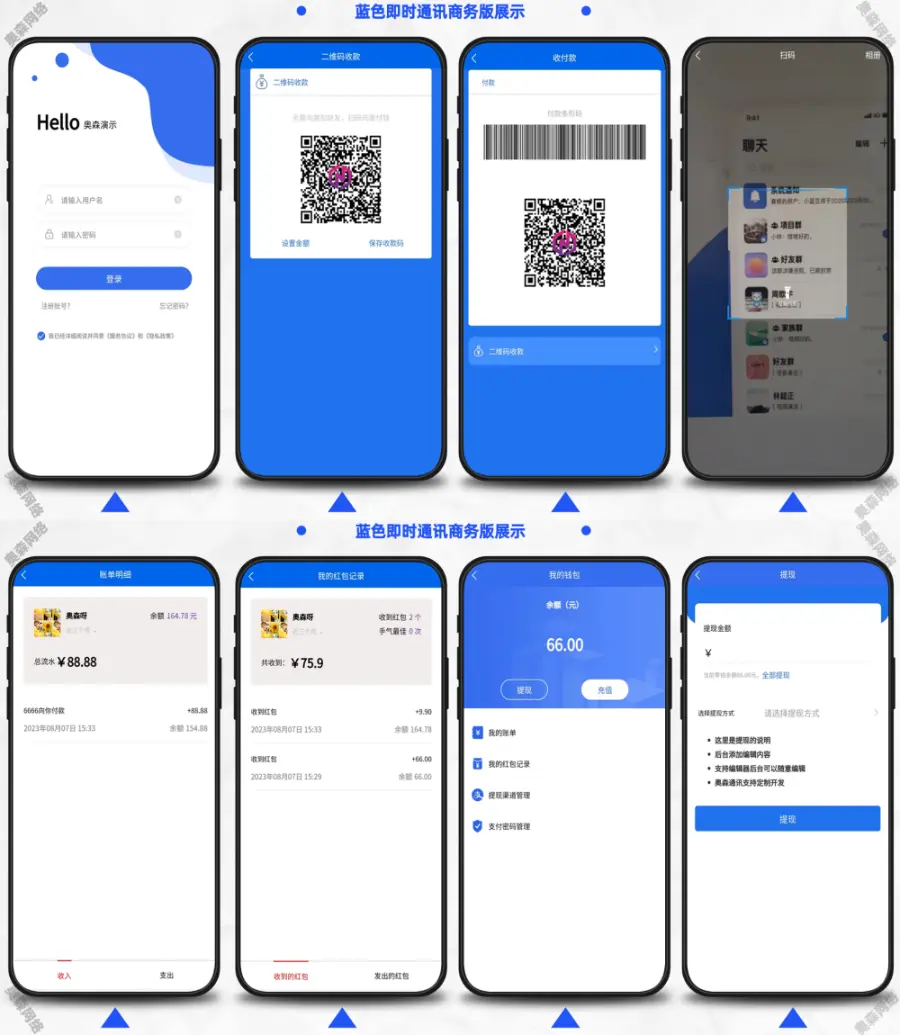 10、我的余额可查看余额明细、红包明细、支付密码管理、提现渠道管理、支持收付款功能、面对面扫码支付、条形码支付等